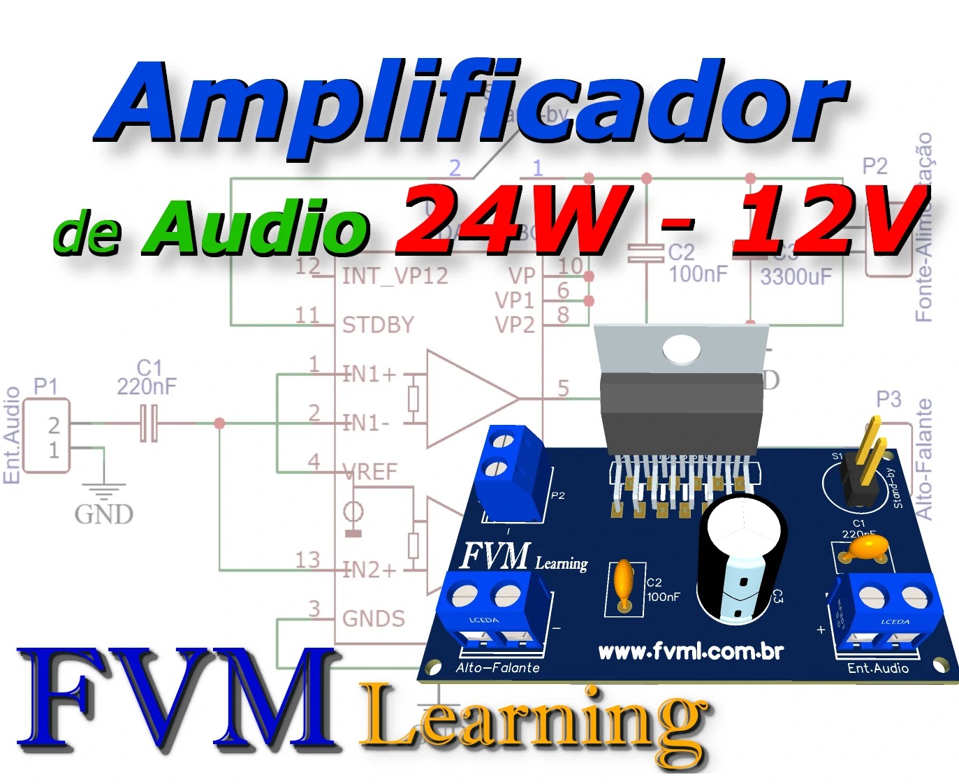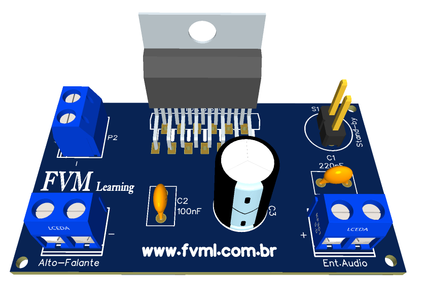 E não é por ser simples que é ruim, pelo contrário ele é um amplificador com boa qualidade sonora e entrega uma boa potência de saída 24W alimentado por uma tensão de apenas 12V.