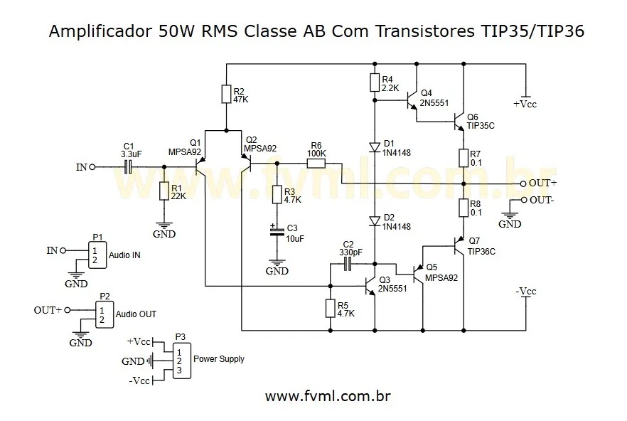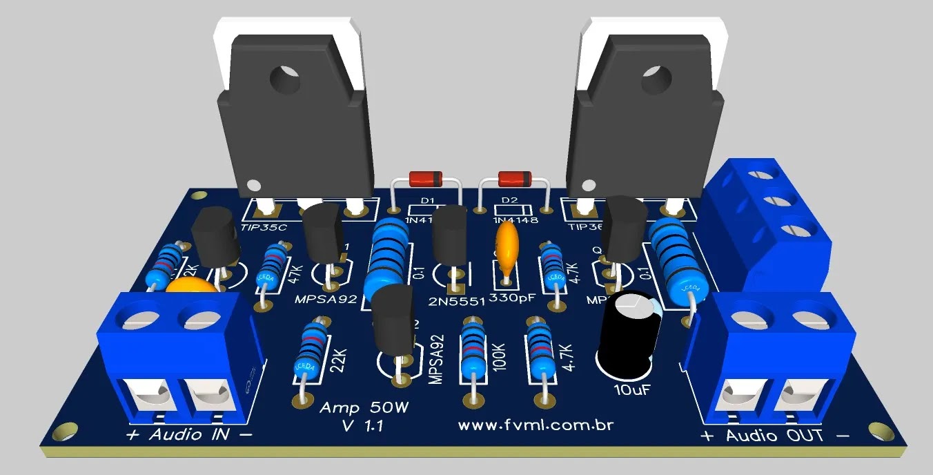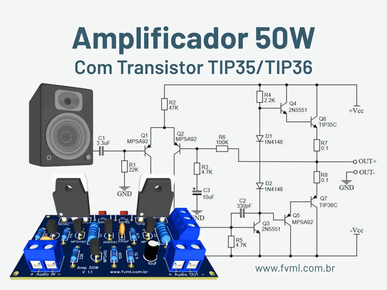Amplificador 50W RMS Classe AB Com Transistores TIP35/TIP36 + PCI
