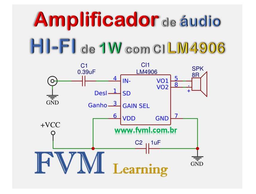 Amplificador de Som HI-FI de 1W com CI LM4906