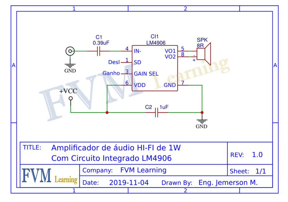 | Fig. 1 – Amplificador de áudio HI-FI de 1W com CI LM4906 |