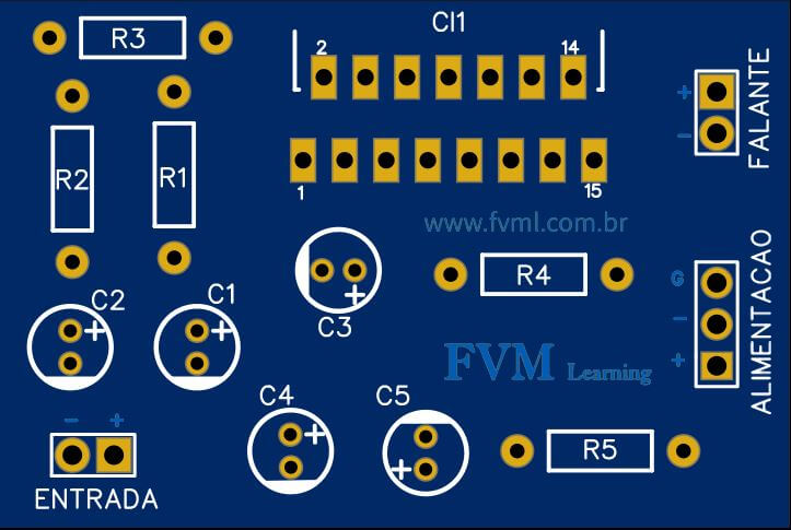 - C2, C3 ———————— Capacitor eletrolítico 22μF – 63V