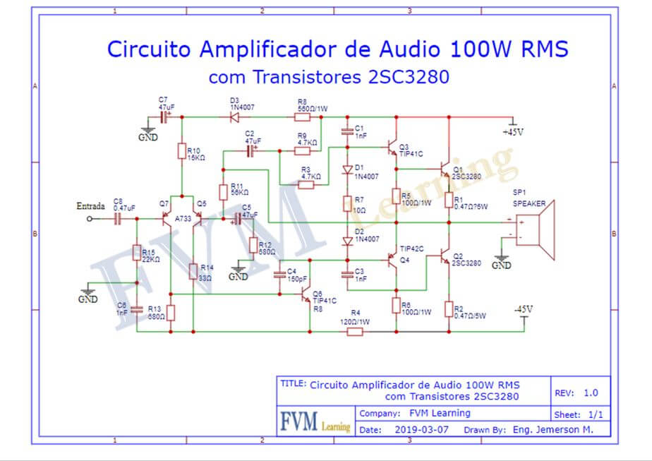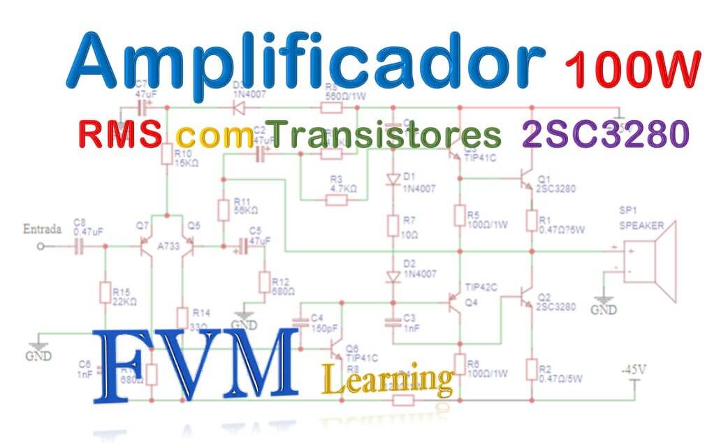 Circuito Amplificador de Áudio 100W RMS com Transistores 2SC3280 - fvml
