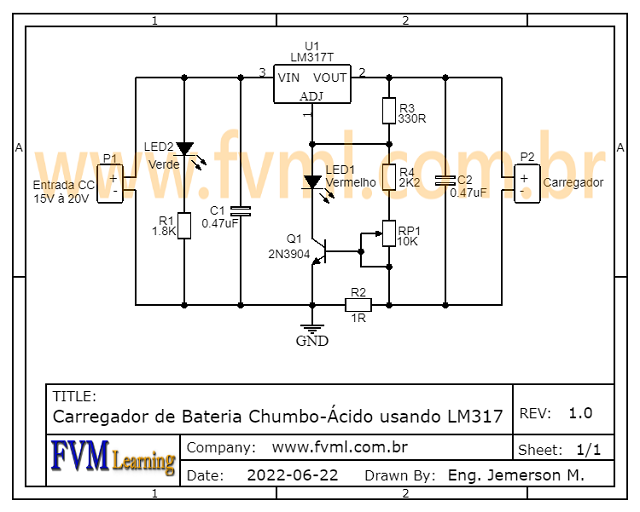 Circuito Carregador de Bateria Chumbo-Ácido com Indicador de Carga usando LM317 - fvml