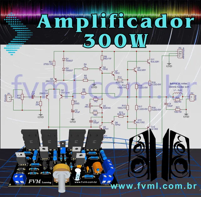 Amplificador de Potência de 300W RMS Usando Transistores MJL3281A e MJL1302A + PCI