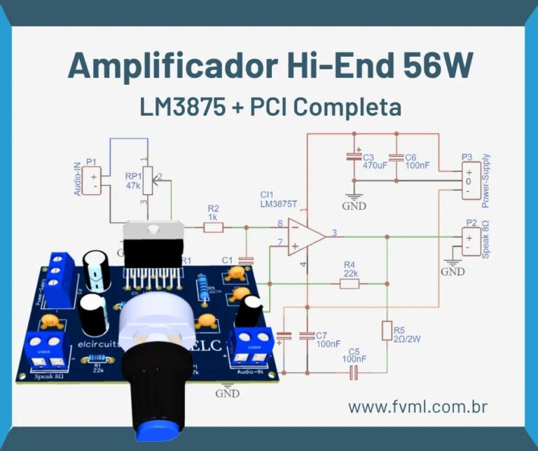 Amplificador de potência 4 x 50W, 14.4V com CI TDA7563A + PCI