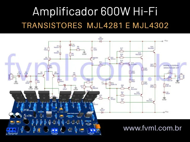 Amplificador de Áudio 100W com TIP142 e TIP147 + PCI