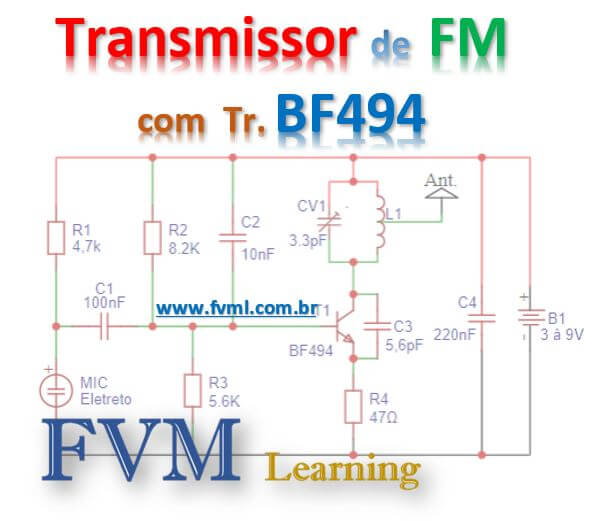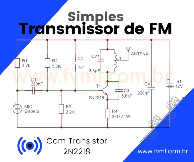 Fig. 1 – Transmissor de FM com Transistor BF494 Olá a Todos! No post de hoje, apresentamos um simples circuito transmissor de Frequência Modulada FM utilizando um só transistor de saída o BF494, que tem uma potência de transmissão de cerca…
