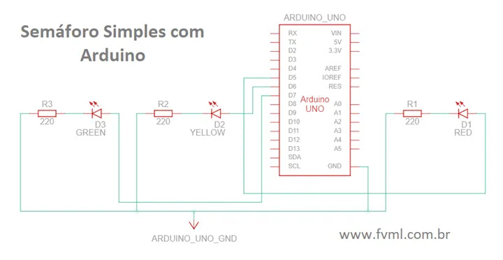 O Semáforo Simples com Arduíno e LEDs funciona através de um