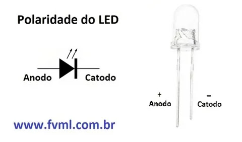 LEDs, Anodo e Catodo, A e K, como