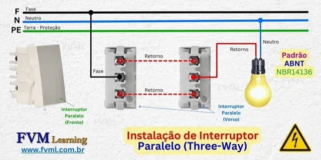 👉 Nota: Este artigo foi escrito com o objetivo de fornecer informações sobre a ligação de interruptores paralelos (three-way). Para obter informações específicas sobre a sua instalação elétrica, consulte as normas e regulamentos locais, bem como as instruções do fabricante dos materiais utilizados.