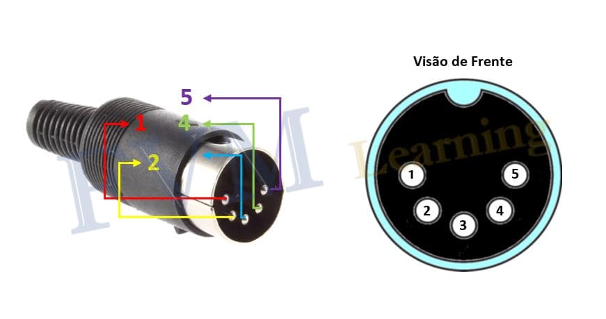 Na figura 2 logo abaixo, temos a Pinagem do plug DIN-5 macho, com imagem