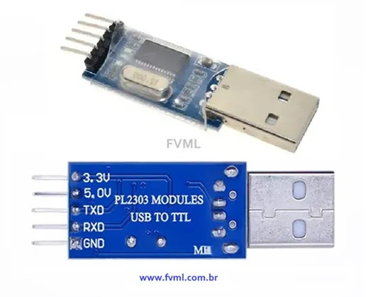 Fig. 6 – Conversor USB Serial FTDI PL2303 (use este como referência ao conectar seu módulo) |