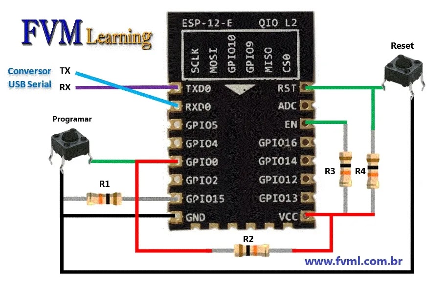 Parabéns! Você agora possui um circuito confiável para programar seu ESP12E