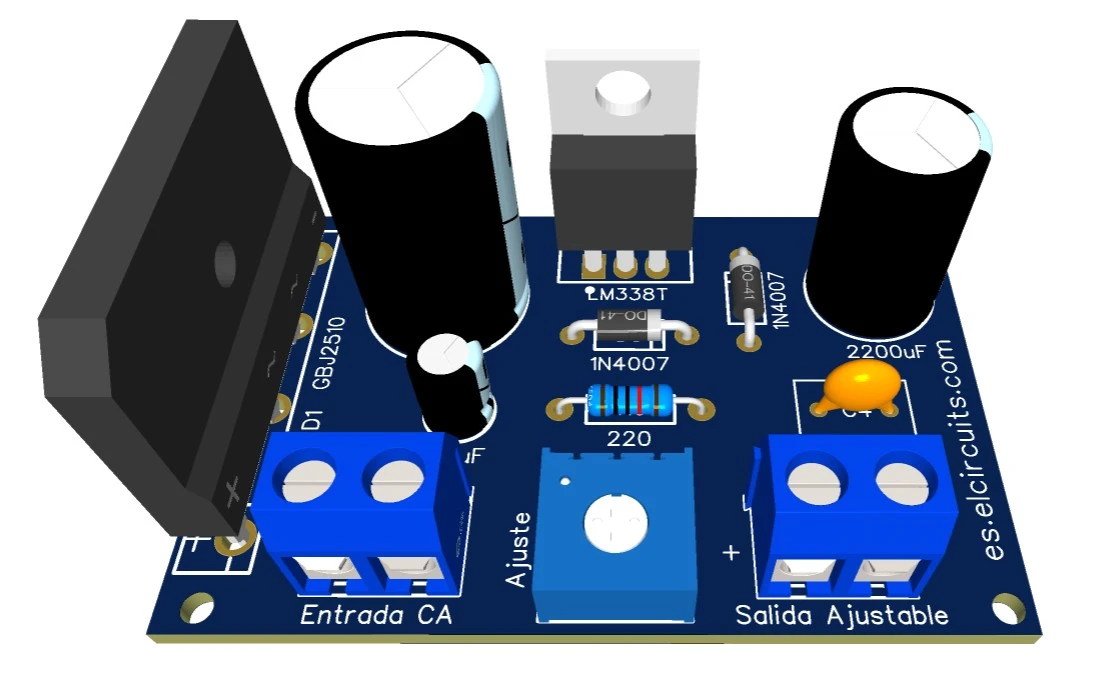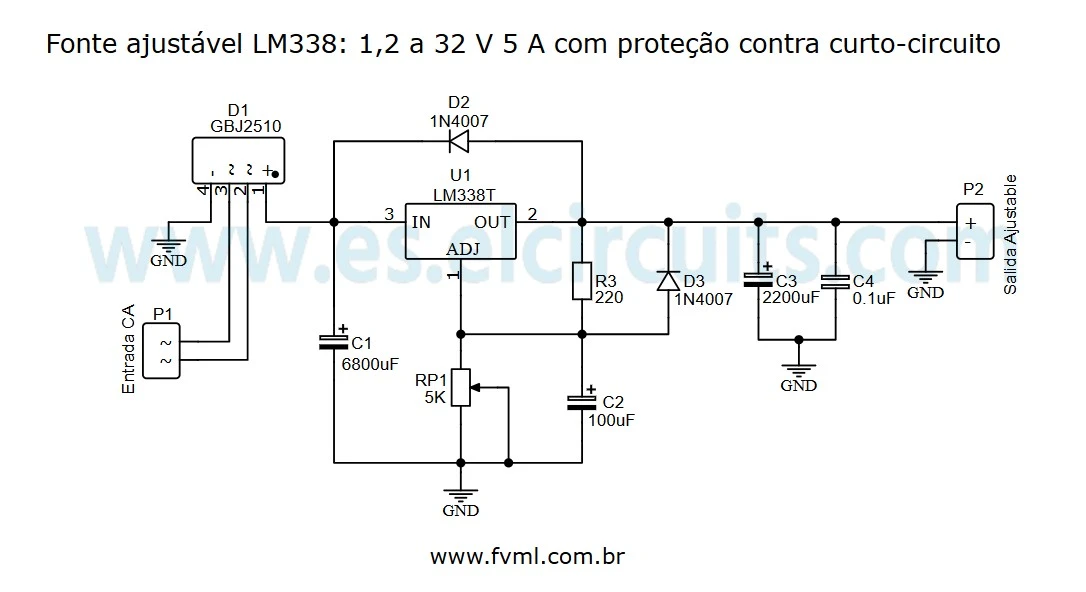 Fonte Ajustável LM338: 1.2 a 32V 5A com Proteção Contra Curto + PCI
