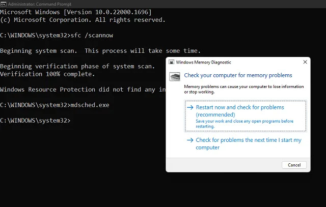 Comando MDT, verificador de problemas de memória no sistema Windows - fvml