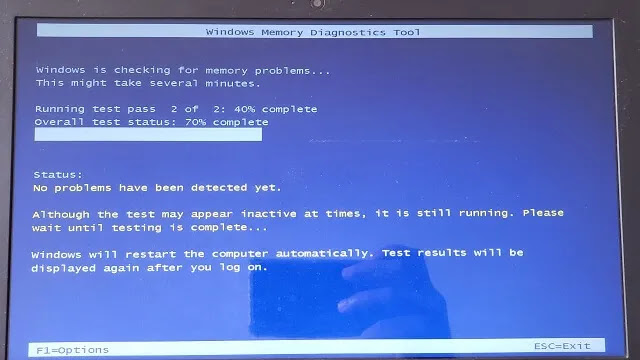 • O computador será reiniciado e a verificação de problemas de memória
