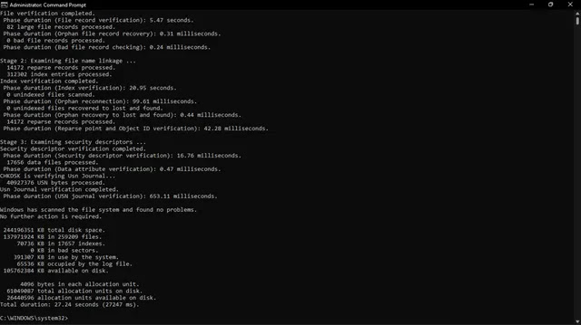 • “chkdsk /scan” verifica todas as unidades do computador em busca de