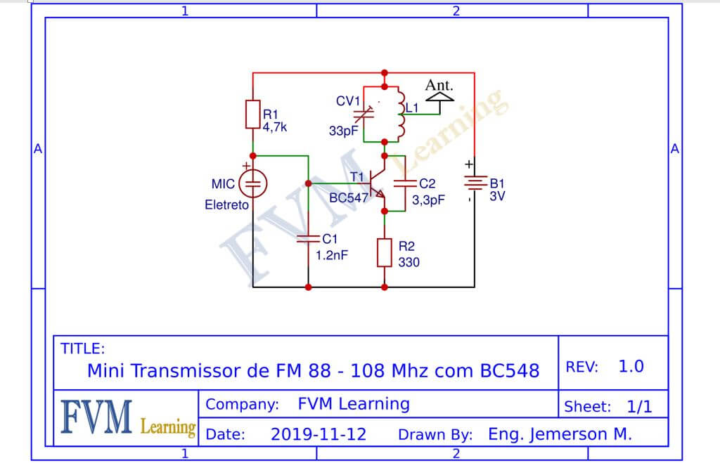 Depois de tudo esclarecido, temos na figura 2 abaixo o diagrama esquemático do Mini Transmissor de FM 88 – 108 Mhz com BC548.