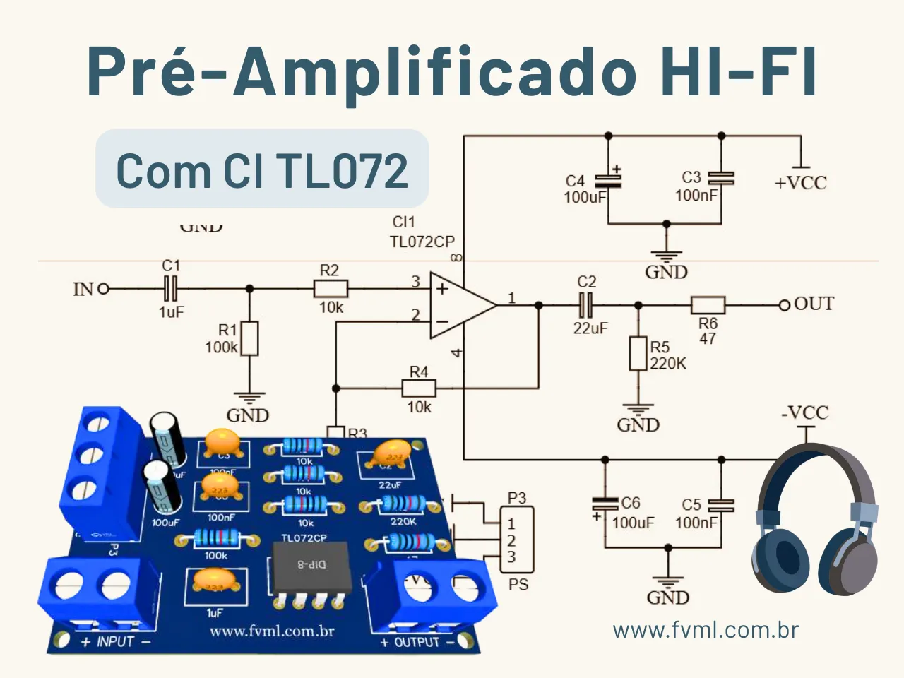 Hoje vamos mergulhar no fascinante mundo dos pré-amplificadores HI-FI com um projeto simples, mas extremamente eficaz, utilizando o icônico Circuito Integrado TL072. Se você busca qualidade sonora excepcional para seus instrumentos musicais ou sistema de áudio, está no lugar certo!