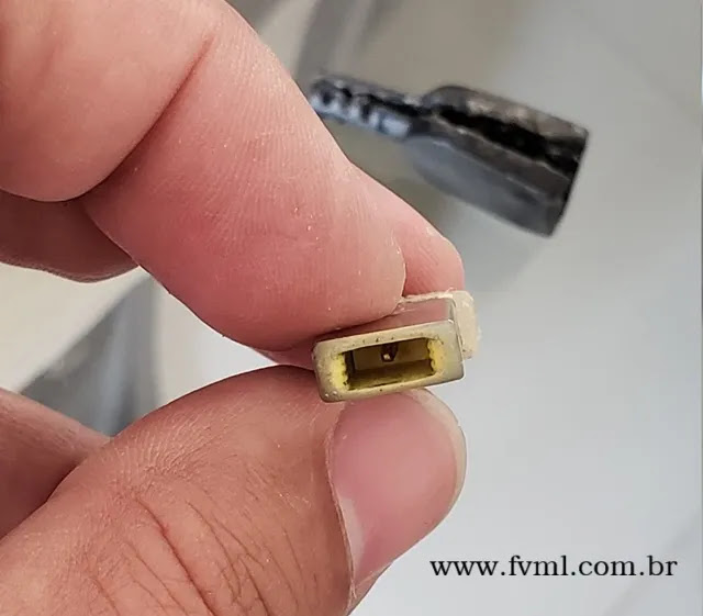 parte traseira do conector com seus 3 pinos, como ilustrado na