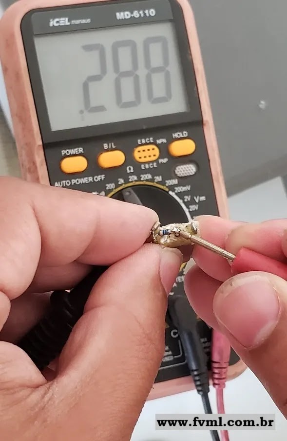 Através do multímetro confirmamos sua resistência, sendo esse um resistor de