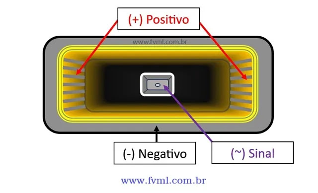 pino negativo do conector, facilmente identificado pela aleta lateral que é