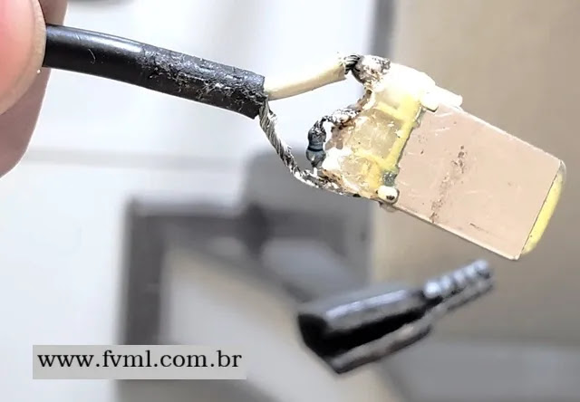 Logo após a separação do involucro do conector, podemos visualizar também a