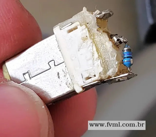 Ao retirar a proteção do conector, o resistor foi um pouco danificado, e ficou